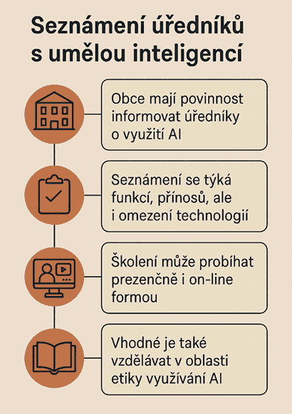 Tato školení se mají týkat nejen pracovníků, kteří systémy přímo obsluhují, ale i těch, kdo AI výstupy používají při rozhodování, připravují podklady pro vedení obce nebo komunikují s občany.