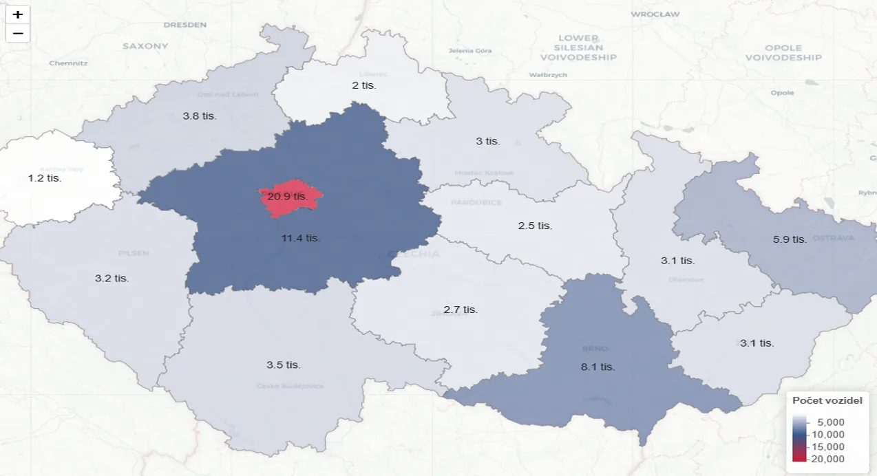 Petr Beneš, vedoucí oddělení elektromobility, Teplárny Brno uvedl, že nejvíce elektromobilů je v Česku registrováno v Praze, Středočeském kraji a Jihomoravském kraji.