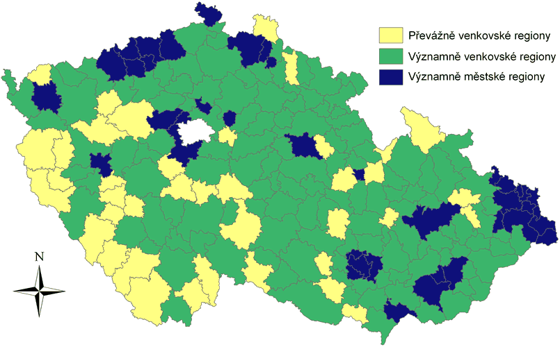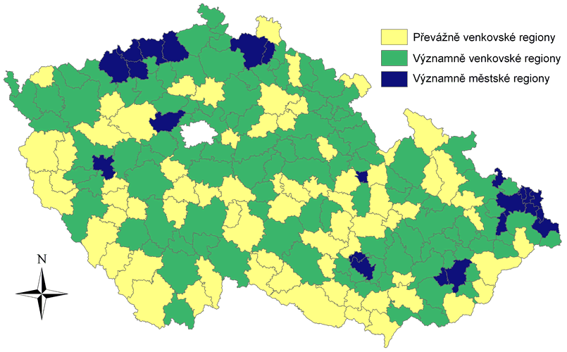 Za Významně venkovské regiony lze považovat území správní obvody obcí s rozšířenou působností, ve kterých žije více než 15 % a méně než 50 % obyvatel v obcích s průměrnou hustota zalidnění nižší než 150 obyv./km2.