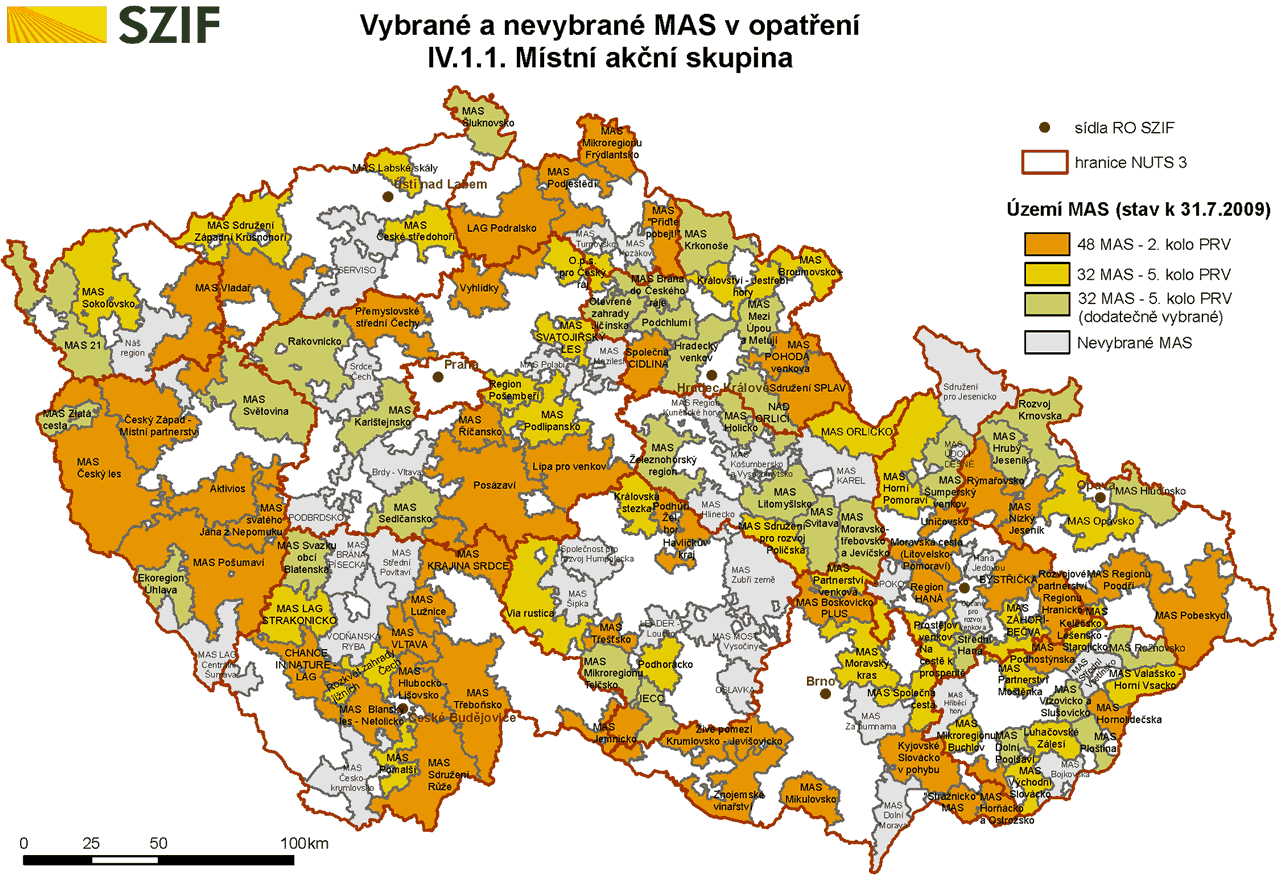 Výběr místních akčních skupin k podpoře z PRV je již ukončen. Probíhal ve dvou kolech a celkem bylo vybráno 112 místních akčních skupin (MAS). Tyto MAS budou na realizaci své místní rozvojové strategie získávat prostředky až do konce programovacího období, tedy do roku 2013. Projekty konečných žadatelů ze svého území mohly vybrané MAS předkládat od roku 2008 již ve čtyřech kolech příjmu Žádostí o dotaci k zaregistrování na regionální odbory Státního zemědělského intervenčního fondu. Do konce programovacího období se počítá ještě s 12 koly příjmu žádostí konečných žadatelů z území podpořených MAS. Celková alokace na MAS a realizaci jejich strategií do konce programovacího období je 184,3 milionů EUR (tabulka 1).