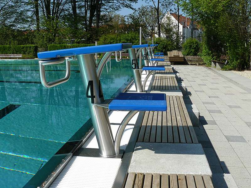 Startovní bloky a držáky pro vymezení plaveckých drah lze bez problému integrovat do příslušné bazénové strany se zachováním plnohodnotného přelivného žlábku. Jen je nutno znát a zvolit odpovídající konstrukci. V místě styku vodní hladiny a kolmé stěny bez žlábku navíc dochází k trvalé tvorbě špinavé šmouhy, jejíž pravidelné čištění přináší další náklady.