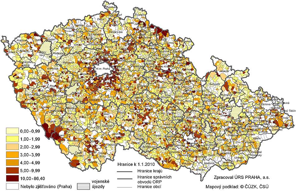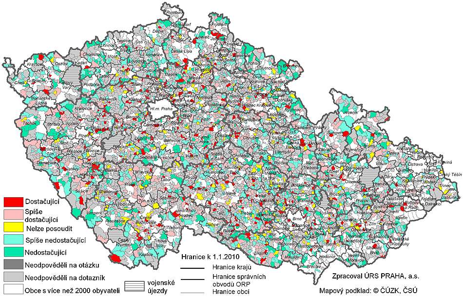 V roce 2010 zpracoval ÚRS Praha studii na téma "Problémy v oblasti bydlení ve venkovském prostředí – v sídlech ČR do 2000 obyvatel". Výstupy z této studie, které předcházelo rozsáhlé korespondenční dotazníkové šetření, s úspěšností více jak 42 %, budou uveřejněny v příštím čísle časopisu Obec a finance. Pro ilustraci je však uveden kartogram, který znázorňuje dostatečnost bytového fondu dle názoru představitelů jednotlivých obcí.