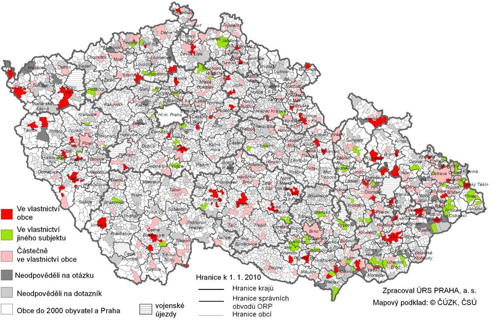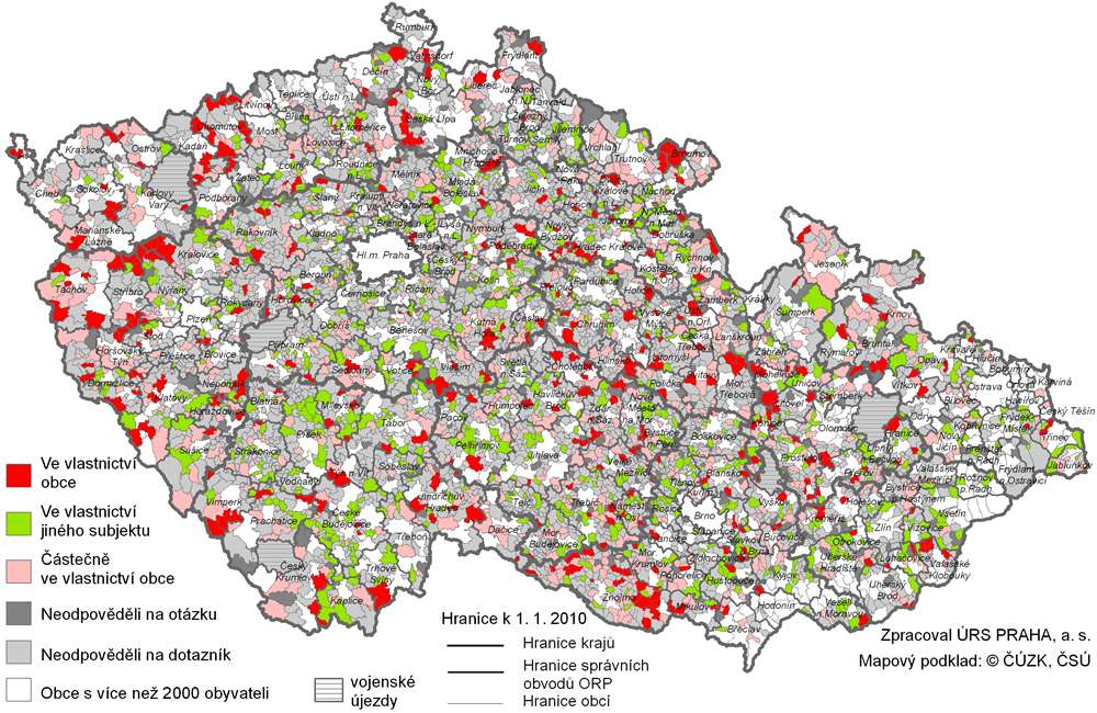 Z celkového počtu 2369 obcí do 2 tisíc obyvatel jich 327 (13,8 %) na otázku neodpovědělo. Jsou to v podstatě obce, které nemají žádné vhodné pozemky. Z ostatních obcí jich jednoznačně disponuje vlastními pozemky 15,4 %, a dalších 36,6 % obcí vlastní pozemky pouze částečně s účastí dalších vlastníků. Více než třetina obcí tak vůbec nemá ve vlastnictví plochy pro bytovou výstavbu. Pokud se týká situace v krajích, relativně nejlépe jsou na tom obce na západě Čech. V Plzeňském i Karlovarském kraji odpovědělo přibližně 22 % respondentů, že jejich obce vlastní vhodné pozemky. Na druhé straně v Jihočeském a ve Zlínském kraji téměř 45 % obcí nemá ve svém vlastnictví žádné pozemky pro bytovou výstavbu.