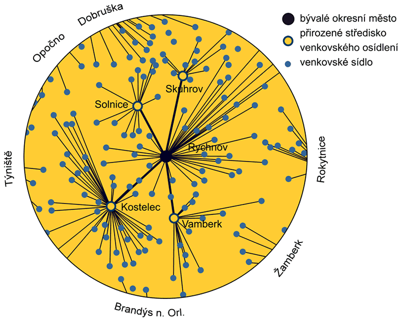 Tedy výsledky jsou v rozporu s tvrzením, že nestředisková sídla ostatní (NSO) byla, alespoň v Královéhradeckém kraji, díky působení střediskové soustavy odsouzena k zániku. Naopak výsledky podporují hypotézu, že středisková soustava měla vliv na transformaci osídlení. Zřejmě středisková soustava podpořila a urychlila degradaci trvalého bydlení v nestřediskových sídlech, zároveň ale došlo k rozvoji jiné funkce – rekreační.