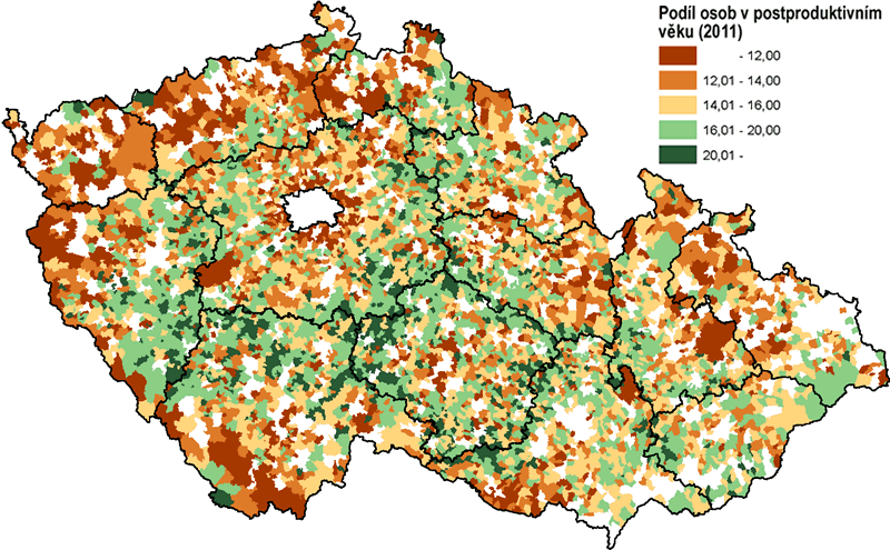 Na intenzitě nabere proces stárnutí až v následujících desetiletích, kdy tuto věkovou hranici překročí početně silné poválečné ročníky. Český statistický úřad zveřejnil v roce 2009 projekci obyvatelstva České republiky do roku 2065, podle které dojde po roce 2010 k výraznému růstu podílu osob starších 65 let, a to až na jednu třetinu populace v roce 2065 (ČSÚ 2009), což ve velké míře zasáhne i venkovské oblasti.