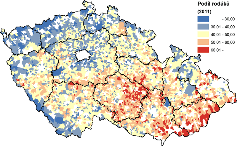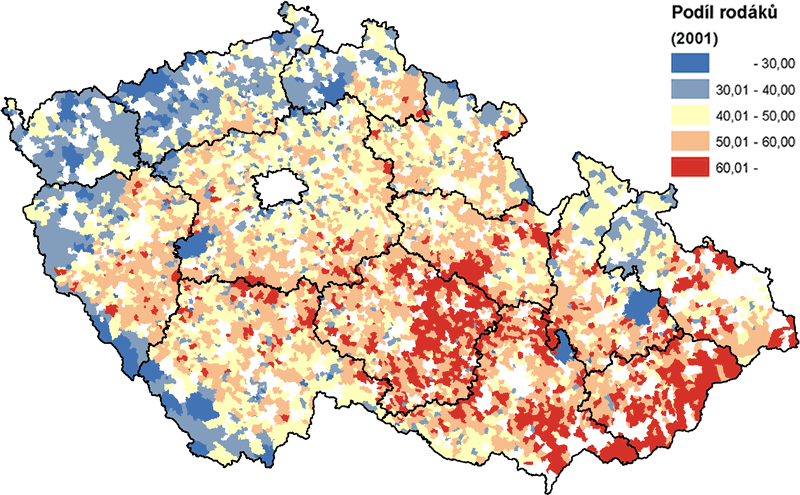 Naproti tomu moravské oblasti jsou specifické vyšší stabilitou obyvatelstva a silnějšími vazbami na své bydliště a krajinu, s čímž souvisí i nižší podíl neobydlených domů. Vyšší míra religiozity obyvatelstva může být vysvětlujícím faktorem i vyšší plodnosti žen, domácnostmi s vyšším počtem osob a nižším podílem rozvedených.