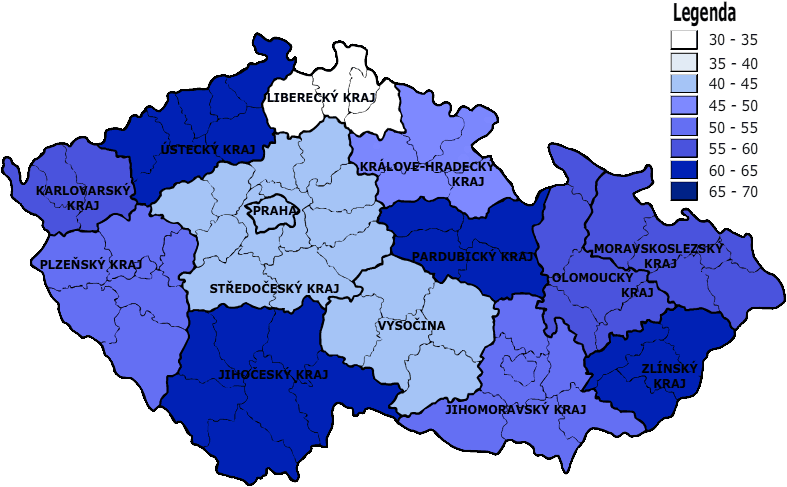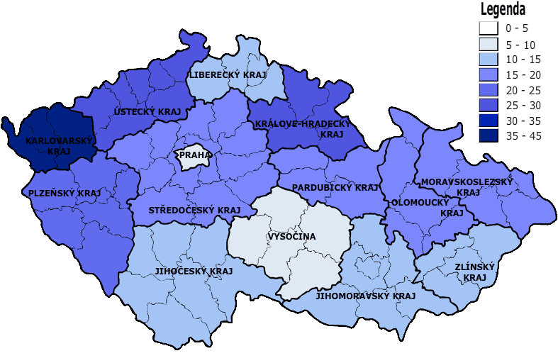Rozložení bankrotů v krajích