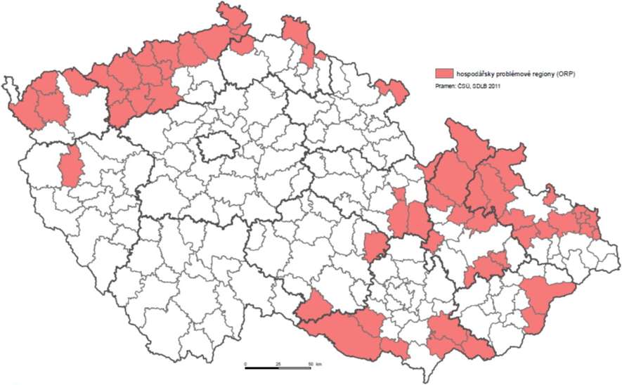 Mezi sociálně znevýhodněné oblastí jsou řazeny regiony vykazující dlouhodobou nezaměstnanost a výskyt sociálně vyloučených lokalit a lokalit ohrožených sociálním vyloučením. Toto je spojeno mimo jiné s potenciálním sociálním napětím a s vyšším výskytem sociálně-patologických jevů (drogy, lichva, gamblerství). Vymezení je prováděno pro území obvodů obcí s rozšířenou působností.