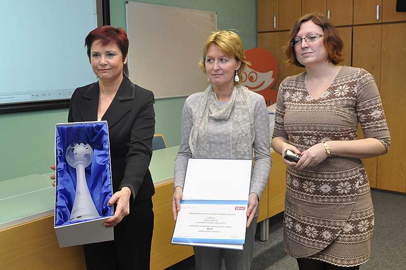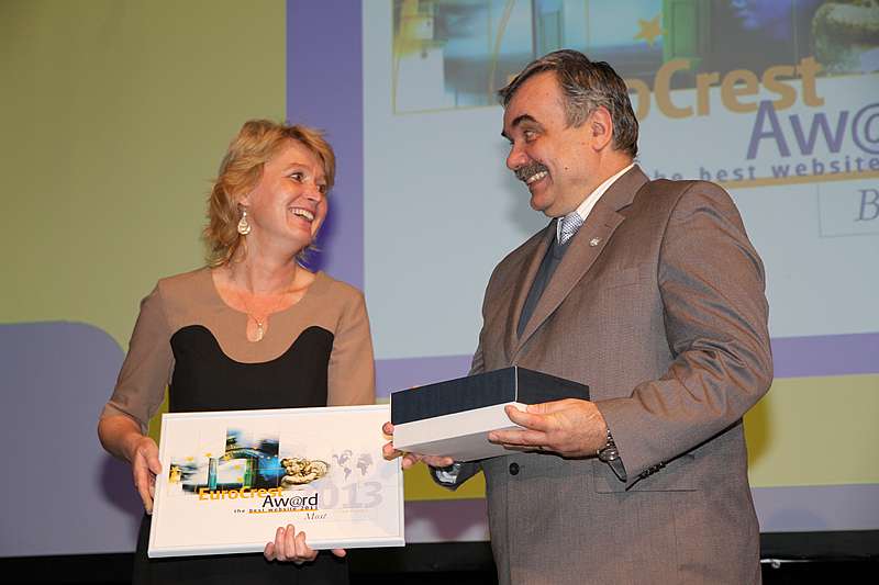 Webmaster Jana Žampová a primátor města Mostu Ing. Vlastimil Vozka s mezinárodní cenou Eurocrest za nejlepší webové stránky