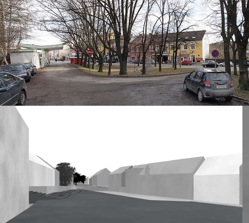 Se založením a obnovou hlavního náměstí souvisí kultivace a rozvoj prostorů kolem něj. Jedním z takových míst je dnes zastavěná proluka, která dříve sloužila průjezdu úzkokolejných vlaků a byla nejkratší cestou do Rakouska. Tuto proluku navrhují autoři znovu „otevřít“ a využít ji právě k obnově železničního spojení. Dále se uvažuje vybudovat objemově menší objekt a upravit parter až k řece. Vhodnou náplní by mohlo být „muzeum města na hranici“, které by v sobě mělo zahrnovat infocentrum, kavárnu, prostory samotného muzea, knihovnu a přednáškový sál.