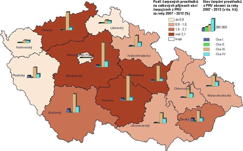 Zkušenost s čerpáním z PRV za období 2007–2013 má 2906 obcí, což odpovídá 47 % všech obcí v ČR. Úspěšné byly zejména obce v kategorii 200–499 obyvatel, jež z celkového objemu prostředků vyčerpaného obcemi (zhruba 7,5 mld. Kč) přijaly téměř polovinu. Kategorie obcí do 200 obyvatel ve srovnání s ostatními kategoriemi zaostávaly (jejich zapojení do programu bylo nejnižší), ale čerpající obce v této kategorii zaznamenaly v průměru nejvyšších hodnot přijatých částek, pokud je vztáhneme k jejich obyvatelstvu nebo vůči jejich celkovým příjmům.