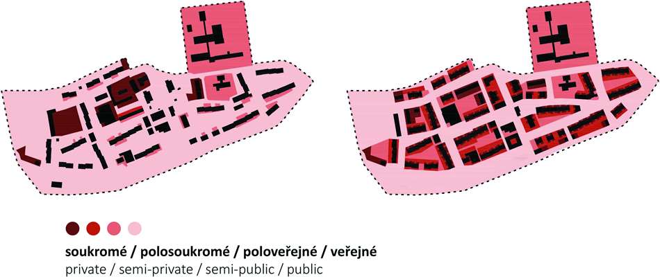Jako jedno z vhodných řešení této situace lze označit hierarchizaci prostranství dle míry soukromí. Struktura města totiž nemusí být vždy založena pouze na základním členění na soukromé a veřejné. Bytové domy mohou mít pro své obyvatele například vlastní dvorky (sdílený prostor určený jen pro obyvatele domu nazýváme polosoukromým prostorem) nebo mohou být některé části bloků veřejně přístupné (veřejně přístupná prostranství s charakterem neveřejného prostoru představují poloveřejné prostory). Různá míra soukromí ve městském prostředí je dána jeho rozdílným charakterem a srozumitelná různorodost prostředí vychází vstříc rozmanitým způsobům užívání.