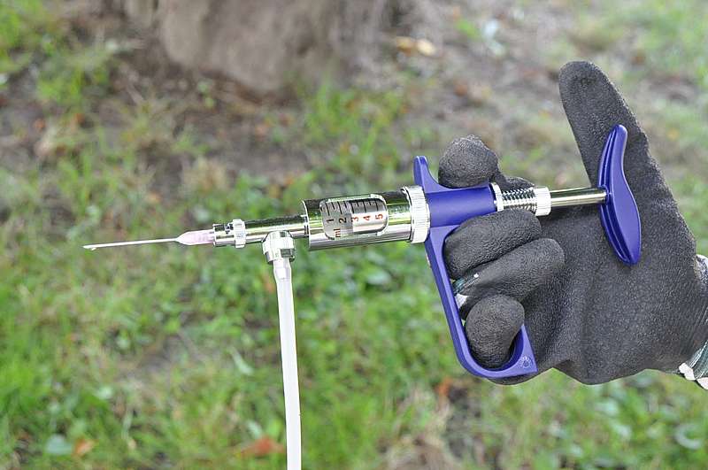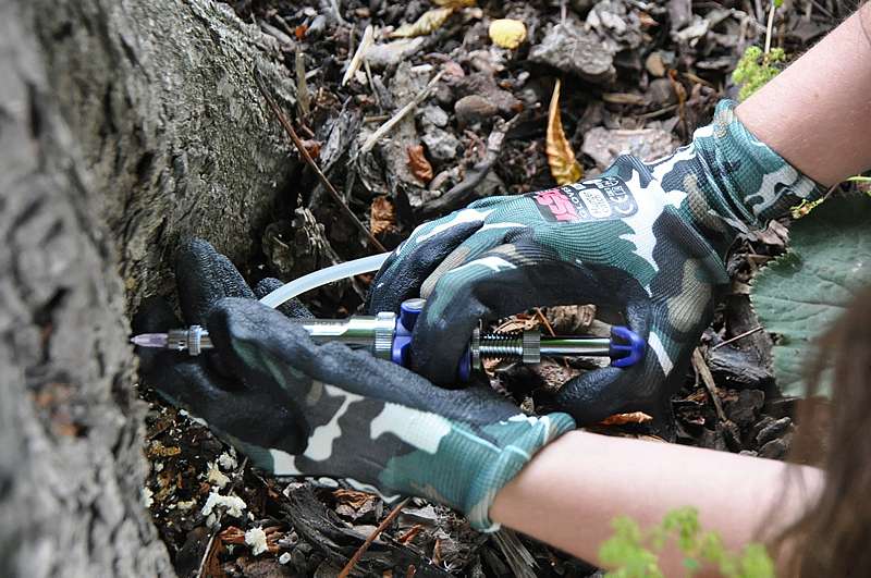 Samotný strom je při aplikaci poškozený pouze minimálně. Do rostliny se navrtají dva až čtyři otvory velké 3,8 mm hluboké 4 cm, do kterých se vloží speciální ventil, jehož povrch je ošetřen fungicidem. Tento ventil zajistí, aby z rostliny neunikaly životně důležité látky, a zároveň umožní bezpečné vpravení účinné látky do vodivých pletiv rostliny. Vývrty zasahují pouze do oblasti bělového dřeva, kde je dřevina schopna díky živým parenchymatickým pletivům poškození odizolovat (kompartmentalizovat). Riziko průniku dřevních hub do tohoto vývrtu je proto minimální.