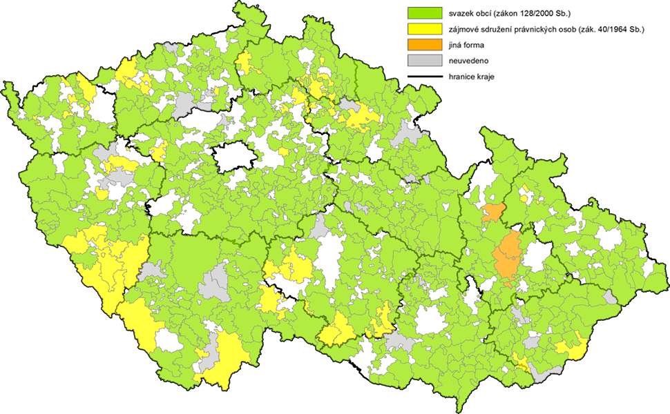 Uvedený obrázek dokládá, že území České republiky je z velké části pokryto mikroregiony, z nichž většina má právní formu jako svazek obcí podle zákona číslo č. 128/2000 Sb. Druhou nejčastější formou je pak zájmové sdružení právnických osob, a to podle zákona č. 40/1964 Sb. S mikroregiony se lze setkat především v tzv. venkovských oblastech.