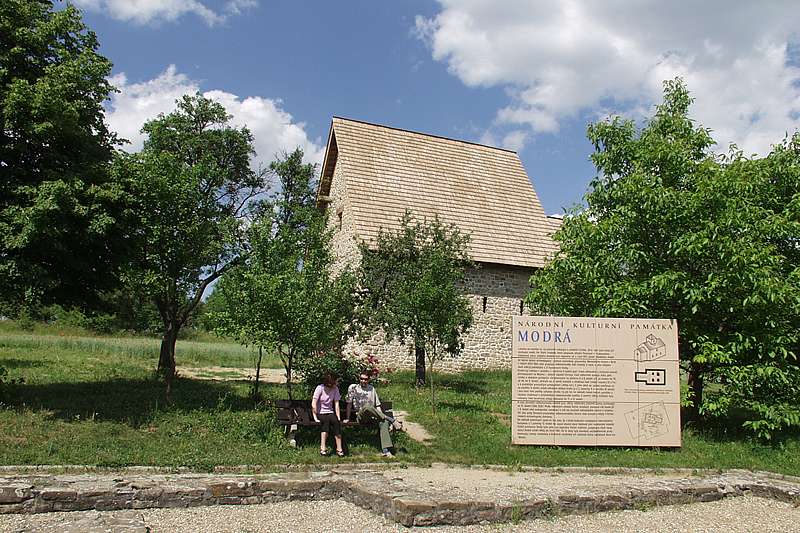 - Archeologický výzkum již před sto lety odhalil základy kamenného kostela v Modré z 9. století, a toto místo je Národní kulturní památkou. V jeho blízkosti jsme postavili jeho hypotetickou rekonstrukci a kostelík sv. Jana byl požehnán olomouckým arcibiskupem, slouží veřejnosti mj. jako oblíbené místo svatebních obřadů. V návaznosti na skutečné archeologické nálezy vznikl i náš Archeoskanzen jako Velkomoravské opevněné sídliště středního Pomoraví. Obec vyčlenila pozemky a zrealizovala výstavbu. Dnes je zde velmi populární turistická destinace, disponující možnostmi ubytování, restaurací a dalšími atrakcemi, mj. i Centrem Slováckých tradic.