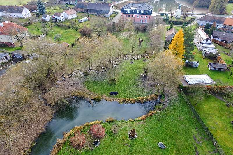 - Přeměna probíhala v etapách průběžně 14 let až do letošního roku. Náročné bylo odstranění staré zátěže a vyprofilování terénu dle projektu. Změnila se tak celá centrální část obce o ploše přes 7000 m2. Biokoridor tvoří umělé meandry, 80 tůněk a 82 oblouků potoka, jehož délka se z 230 m prodloužila na 420 m. Vznikly tři mokřady a druhé koryto, které tvoří velká niva, schopná odvést dvousetletou vodu. Vše je zatravněné a osázené mokřadními rostlinami, trvalkami, pěti druhy vrb a dalšími stromy. Doplnily se dřevěné lávky a vyřezávané sochy i prostor pro jeviště a hlediště letní divadelní a hudební scény.