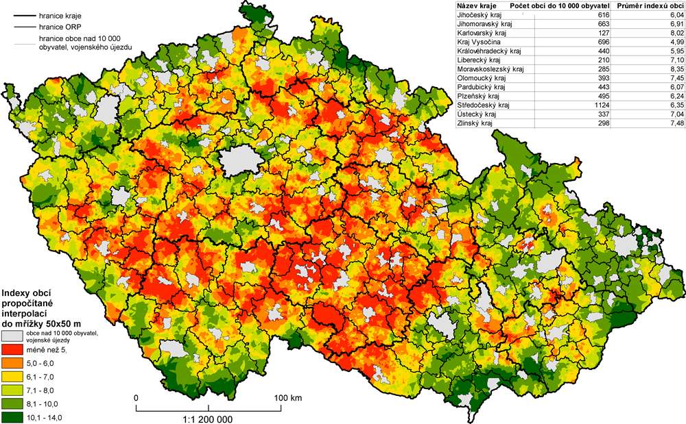 SMS ČR zjišťovalo, zda jsou v obcích do deseti tisíc obyvatel k dispozici následující položky občanské vybavenosti – prodejna potravin, restaurace/hospoda, základní škola, mateřská škola, praktický lékař, pediatr, zubař, lékárna, pošta, vodovod, čistička odpadních vod, kulturní sál a sportoviště. Jedná se o kritéria, která vystihují, zda v dané obci jejím obyvatelům nechybí některá ze základních služeb, které si oprávněně spojujeme s komfortním životem současného období. „Podle toho, kolik z výše uvedených kritérií obec naplnila, byly všechny obce v ČR indexovány a výsledek jsme promítli do přehledných map,“ vysvětluje Stanislav Polčák, předseda Sdružení místních samospráv.