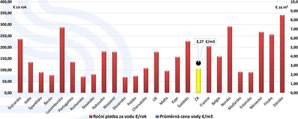Podle Sdružení oboru vodovodů a kanalizací ČR (SOVAK ČR) za vodu zaplatí průměrná domácnost v ČR měsíčně 535 korun, měsíční průměrná platba za elektřinu však činí 1470 korun a za plyn 863 korun. Kromě toho při rostoucích mzdách roste množství vody, které si lze koupit za průměrnou mzdu. Zatímco v roce 2013 bylo možné za průměrnou mzdu koupit 327,2 kubíku vody, v roce 2018 se tento objem zvýšil na 369,4 kubíku vody. Pokud se pak týká porovnání s poplatky za vodu v rámci EU, pak se ČR pohybuje mírně nad průměrem Evropy. To je ale do značné míry ovlivněno zdaněním vody, které bude u nás do začátku letošního května nejvyšší v rámci regionu střední Evropy.