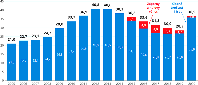 Vývoj státního dluhu v posledních letech charakterizovala tendence jeho snižování v podílu k růstu hrubého domácího produktu. Od roku 2012 (40,8 % HDP) se státní dluh postupně snižoval až do roku 2019 (28,5 % HDP). Pokud jde o tento zásadní ukazatel úspěšnosti hospodaření státu, řadí se Česká republika k nejméně zadluženým státům Evropské unie (nižší zadluženost vykazuje jen Lucembursko, Bulharsko a Estonsko). Hospodaření v loňském roce znamená navýšení podílu státního dluhu na úroveň 36,9 % HDP – viz graf 9.