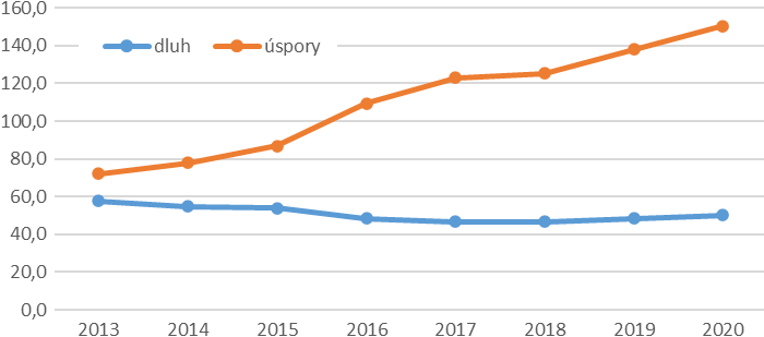 Obce se s obtížnými podmínkami hospodaření v roce pandemie vypořádaly poměrně dobře. Snížené výnosy ze sdílených daní jim stát z velké části kompenzoval jednorázovou dotací v polovině roku. Kapitálové výdaje sice vzrostly a k tomu jim napomohlo i zvýšení investičních dotací, přičemž se avšak jejich podíl na celkových výdajích o necelý procentní bod snížil. Objem dluhu pokračoval i v loňském roce v mírném růstu, avšak byl stále nižší než např. v roce 2016. Pandemie nepřerušila poměrně silný růst úspor obcí, a tak se i nadále rozevírají nůžky mezi objemem dluhu a úspor. Tento vývoj naznačuje, že obce v roce spojeném se značnou nejistotou byly obezřetné v utrácení peněz, jen dokončovaly započaté investice a spíše odkládaly započetí akcí nových.