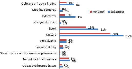 Spolupráce měst a obcí se orientuje převážně na kulturní aktivity (35 % respondentů), a to například v podobě organizování vystoupení a festivalů. V současnosti se spolupráce často zaměřuje na budování cyklostezek (9 % respondentů) spojujících historická, kulturní a jiná místa, což by mělo vést k vzájemnému propojení, budování vztahů ke sportu a respektování životního prostředí. V porovnání s minulostí je vidět nárůst spolupráce v téměř všech dotazovaných oblastech (viz graf 5). Méně častá je přeshraniční spolupráce týkající se oblastí dopravy, sociálních služeb, územního plánování nebo odpadového hospodářství.
