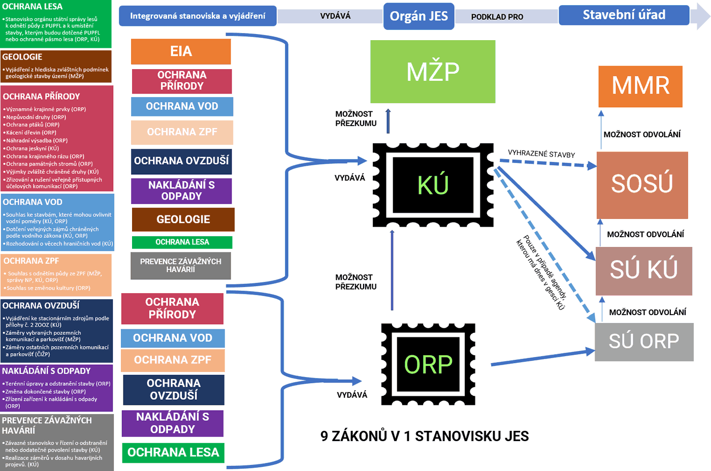 Z pohledu stavebníka dojde k zásadnímu zjednodušení a zrychlení procesu povolování staveb. V budoucnu bude díky novému zákonu vydáváno v oblasti ochrany životního prostředí pro konkrétní stavbu pouze jedno stanovisko a pouze jedním úřadem. Garantem odbornosti a ochrany veřejného zájmu přitom zůstane MŽP, které počátkem dubna poslalo návrh zákona do mezirezortního připomínkového řízení, a to souběžně s návrhem novely stavebního zákona v gesci Ministerstva pro místní rozvoj. Obě změny mohou být tak projednávány současně.