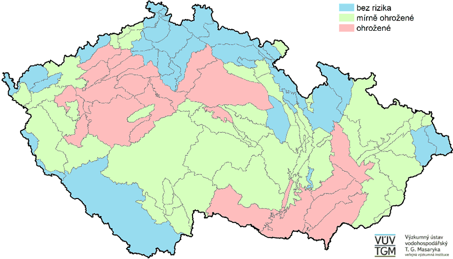 Pokud se scénáře dopadů změny klimatu budou naplňovat jako dosud, lze očekávat narůstající nedostatečnost kapacit zdrojů mělké podzemní vody na řadě území České republiky. Současně probíhající výzkumy Výzkumného ústavu vodohospodářského TGM, v. v. i., hodnotí budoucí ohrožení kapacity zdrojů podzemních vod výrazně detailněji, než obvykle publikované mapky ohroženosti území akumulace podzemních vod (viz obrázky 2 a 3). Nepříznivému výhledu nahrává zejména skutečnost, že doplňování zdrojů podzemních vod probíhá s výrazným časovým zpožděním, takže deficity úrovně hladin podzemních vod se prohlubují při víceletém období hydrologického sucha.