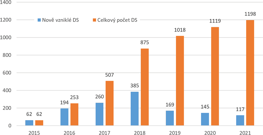 Situace v České republice je dostatečně známá, řada obcí a měst se donedávna potýkala s kritickým nedostatkem míst v mateřských školkách a mnohde tento stav platí doposud. Při snaze naplnit Barcelonské cíle velmi pomohlo zřizování dětských skupin, přesto však k dosažení doporučených cílů stále chybí potřebné kapacity. Jaký je stav v České republice ukazuje graf 3. Rozvoj dětských skupin podpořila i nová dotační výzva MPSV (viz Nová výrazná podpora pro dětské skupiny ze dne 1. března 2023). K 31. 12. 2022 je v České republice celkem 1752 dětských skupin s platným oprávněním s celkovým počtem 23 348 míst. Od začátku provozu této služby v roce 2015 došlo k jejímu značnému nárůstu, což ukazuje graf 4.