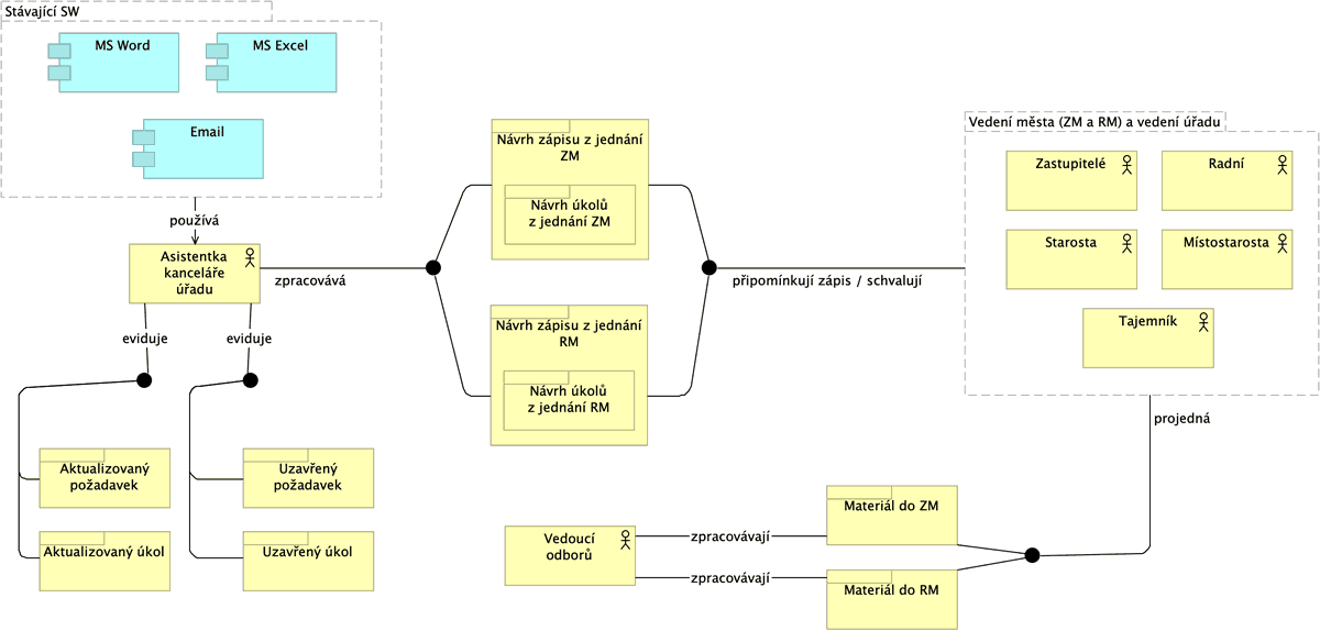 - Účastníci procesu: Zastupitelé, Radní, Starosta, Místostarosta, Tajemník, Asistentka kanceláře úřadu, Vedoucí odborů