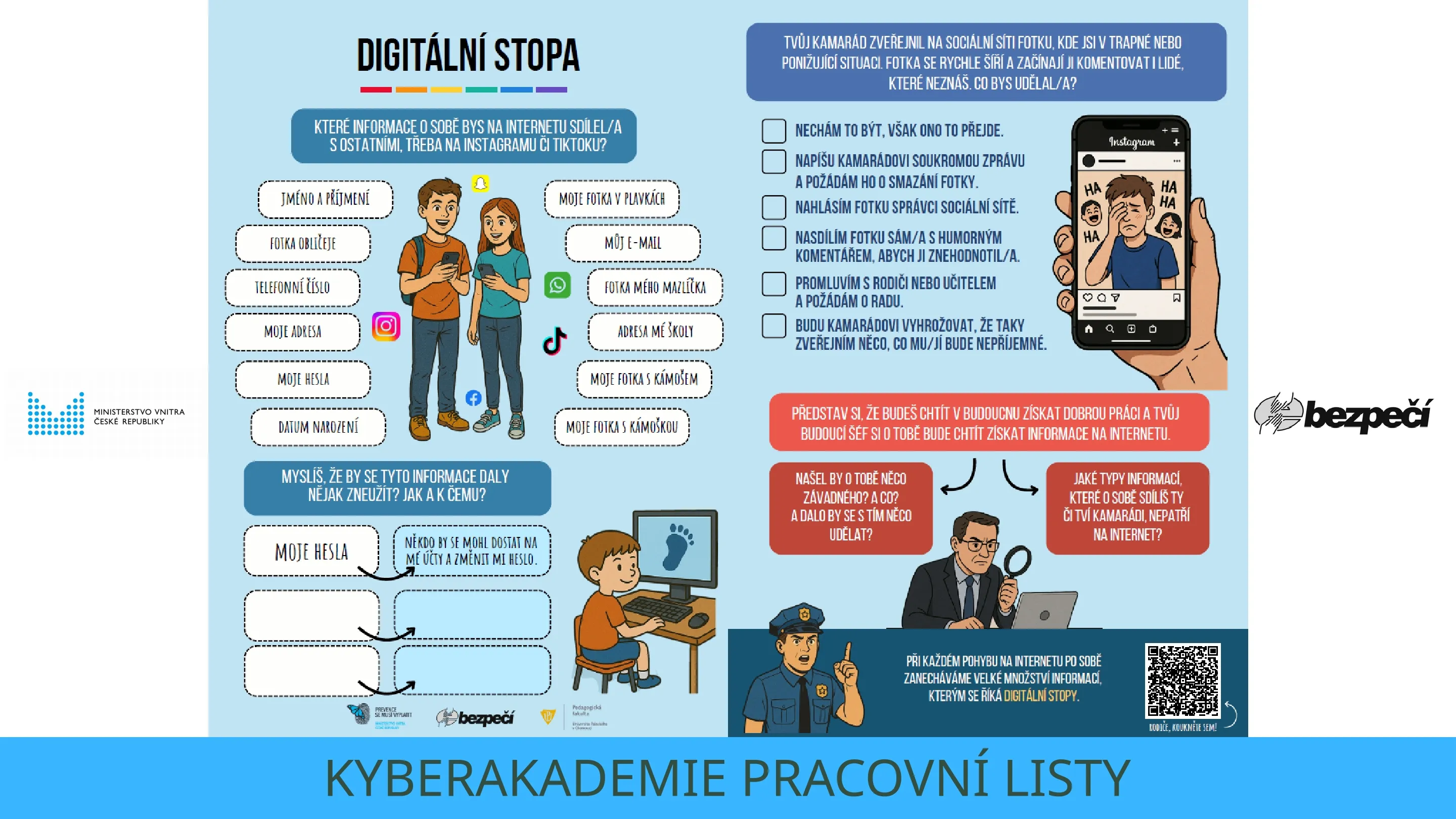 Pomoci může projekt digirozhledna.cz, který pro rodiče poskytuje praktického průvodce při seznamování se s digitálním světem, nebo Kyberakademie Ministerstva vnitra a Univerzity Palackého, jejíž součástí jsou nově i pracovní listy, pomocí kterých mohou preventisté dětem ukazovat, jak se chovat v kyberprostoru.